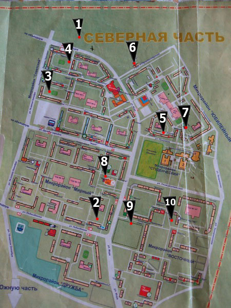 Пока ехал на место, составил такой стишок: Северка, вокзал, пожарка, Дороги плавный поворот, Ворота с вольво - пропускаем. Немного дальше метка ждет. Подсказка №2 для всех (25 минут) Если двигаться от вахтового вокзала мимо пожарной части, повернуть неного направо, проехать гаражный кооператив "Вольво", то можно выехать на нужный строящийся гаражный кооператив. Там вас встретит метка. Коды написаны мелко, поэтому ищите тщательнее :) Подсказка №3 для всех (1 час 5 минут) В соседние кооперативы не ходить, изучайте метки. 1й код находится недалеко от первой метки. Зоны расположения шести из семи кодов представлены на фотках: